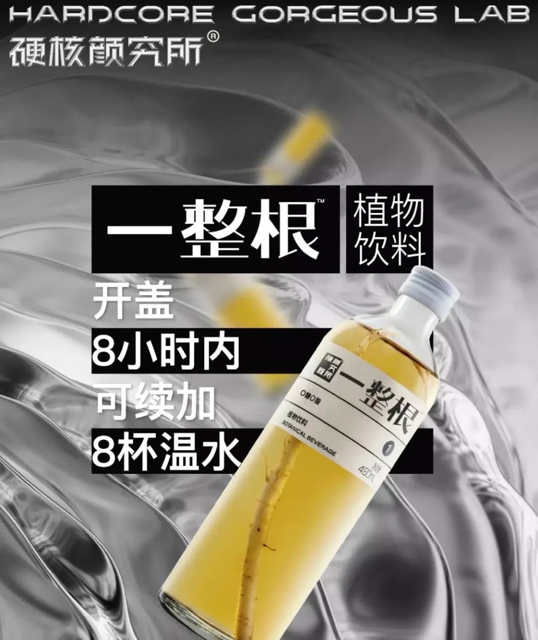 最近火出圈的“一整根”则选择从产品的外观包装上做文章,将一整根完整的长白山人参放入玻璃瓶中,打破消费者以往对人参昂贵、奢侈、遥不可及的形象认知,用简单粗暴的视觉冲击输出产品卖点,给予消费者巨大新奇感以及可视化的产品利益点,吸引了一大批年轻人前往购买打卡。