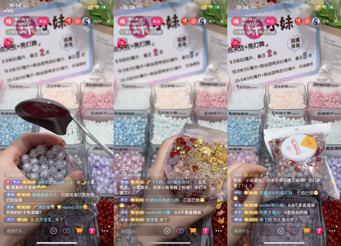现场下单、由主播亲自为你挑选商品的形式开始在抖音直播间渗透。不仅仅是串珠市场,与之相类似的还有发饰发卡。