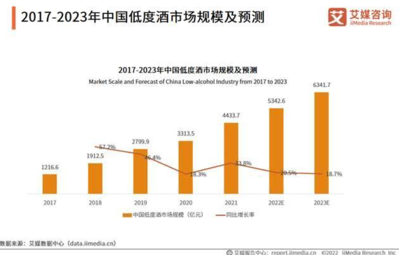 艾媒咨询发布的研究报告显示,中国低度酒销售市场规模整体保持高速增长态势,预计2022年将突破5000亿元。微醺市场规模不断扩大,主要得益于饮酒需求的变化。