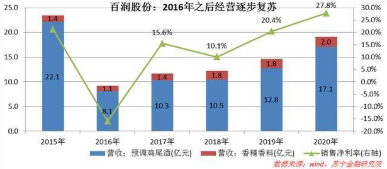 自2016年之后,随着预调鸡尾酒业务的逐步回升,百润股份逐步走出经营困局。百润股份作为国内预调酒市场中的代表企业,他的经营变化在一定程度上也能够代表预调酒市场的变化情况。