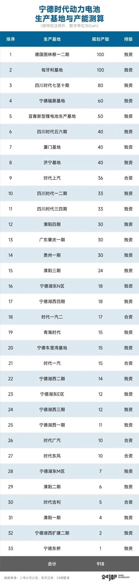 而东吴证券发布研报称,2025年宁德时代产能规划已近900GWh。