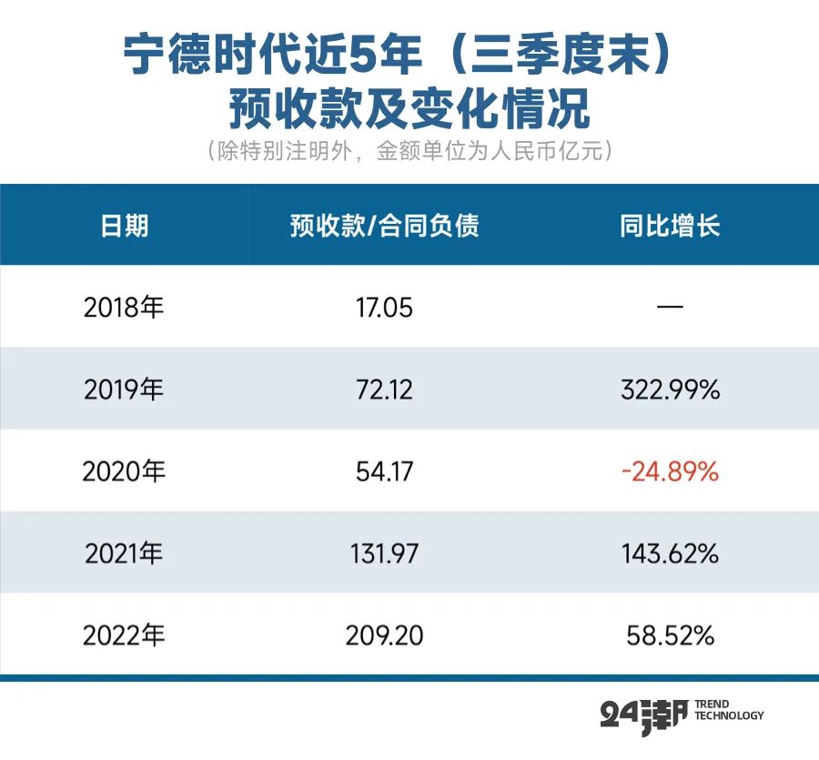 很多数据及信息显示,未来宁德时代仍有很强的增长潜力。比如据24潮统计,截止9月末宁德时代 “合同负债”(对应客户预收款)达历史新高的209.20亿元,同比增长了58.52%。