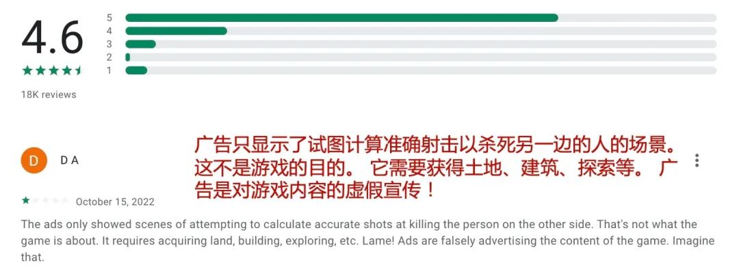 更改买量策略后,该游戏出现了很多玩家负面声音:广告过多、产品设计导致用户体验不佳、虚假宣传、强制机制、抄袭等问题。