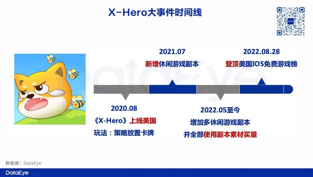 《X-Hero》的休闲游戏的副玩法买量,出海美国脉络、数据如何?今天DataEye一一拆解。