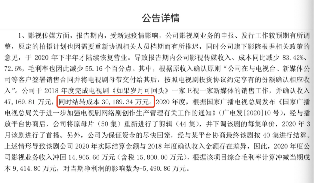 甲方一核算,如果续集项目的盈利压力大,甚至赔本概率很大,当然不会轻易去启动项目。《庆余年》第一部是在2018年“限薪令”前敲下演员合同的,主演片酬占比不少。对《庆余年》有10%参投比例的当代文体(现在为ST明诚),在回复2020 年年度报告的信息披露监管工作函中披露,该公司同期投资现代剧《如果岁月可回头》成本达3亿元。
