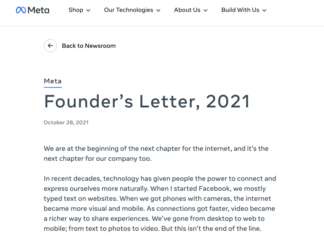 Meta官网宣布其元宇宙愿景