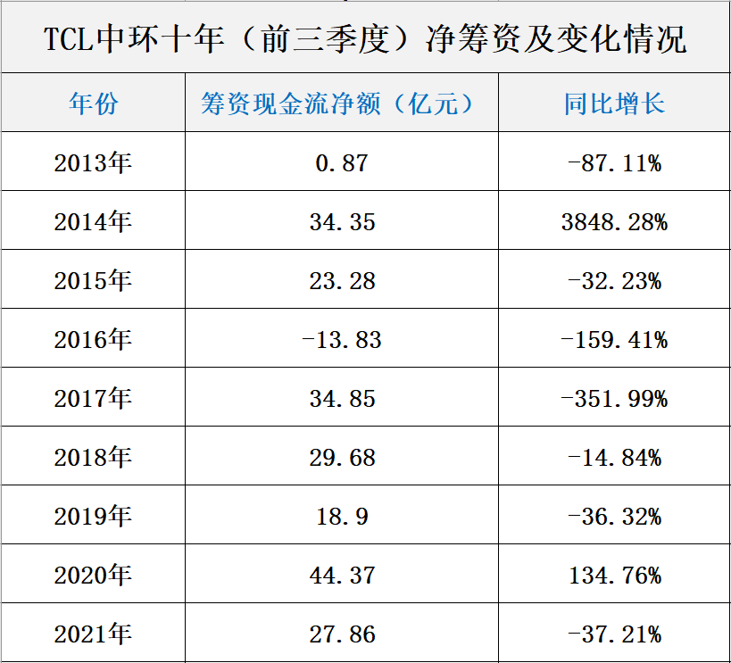 第七大纪录,强大的资本影响力及号召力,也是TCL中环不断开拓版图,发展壮大的重要因素之一。这从其净筹资规模的变化中可以得到一定验证,据黑鹰光伏统计,2022年前三季度TCL中环“筹资活动现金流净额”为57.89亿元,同比增长了107.79%,这将其净筹资记录再次提高了整整13亿元。
