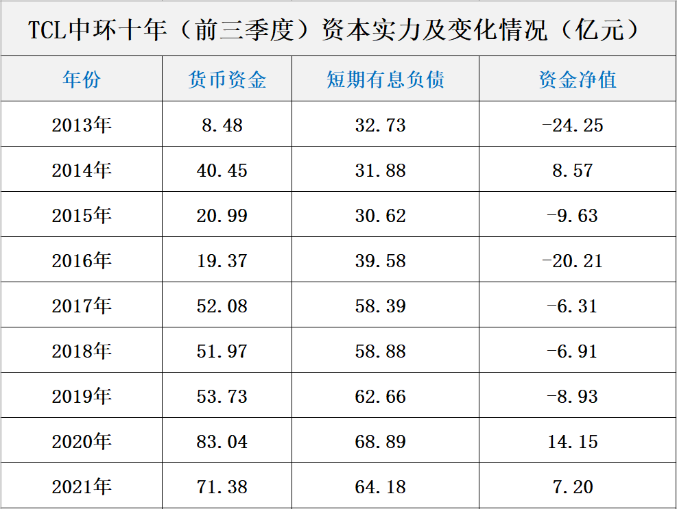 据财报披露,截止9月末TCL中环货币资金储备达到了历史新高的123.61亿元,同比增长73.17%。而其短期有息负债(短期借款、一年内到期的非流动负债等)规模为35.29亿元,以此计算,其资金净值为88.32亿元,同比增长了11.27倍,处于净资金状态,资本实力位居行业前列。