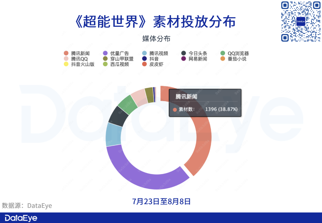 投放平台方面,腾讯系渠道依旧是该阶段投放频率、次数最多平台,不同的是,腾讯新闻投放占比上升至38.87%、优量广告占比则下降至33.53%。