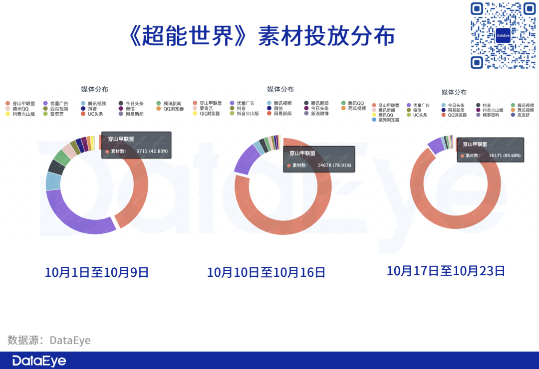 而在投放平台方面,第一周,穿山甲联盟投放占比为42.83%;第二周,穿山甲联盟投放占比飙升至78.9%;第三周,穿山甲联盟投放占比直接来到89.68%。
