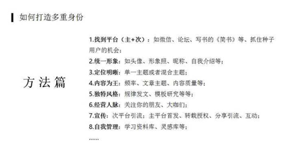 很多人都会困惑,一开始该如何找到自己的多重身份?其实打造多重身份的过程就是一个自己身上的优点不断被放大的过程。如果你的优点很明显,那你会发现自己在做一件事情的过程中会不断得到积极反馈。