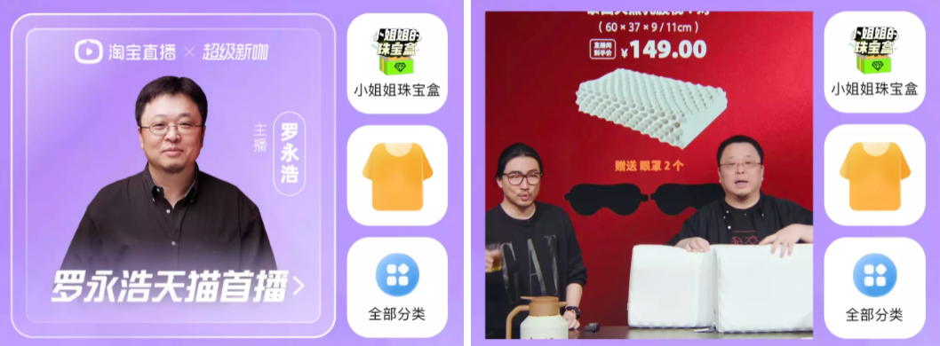 “罗永浩”直播间上推荐位,图源 / 淘宝APP