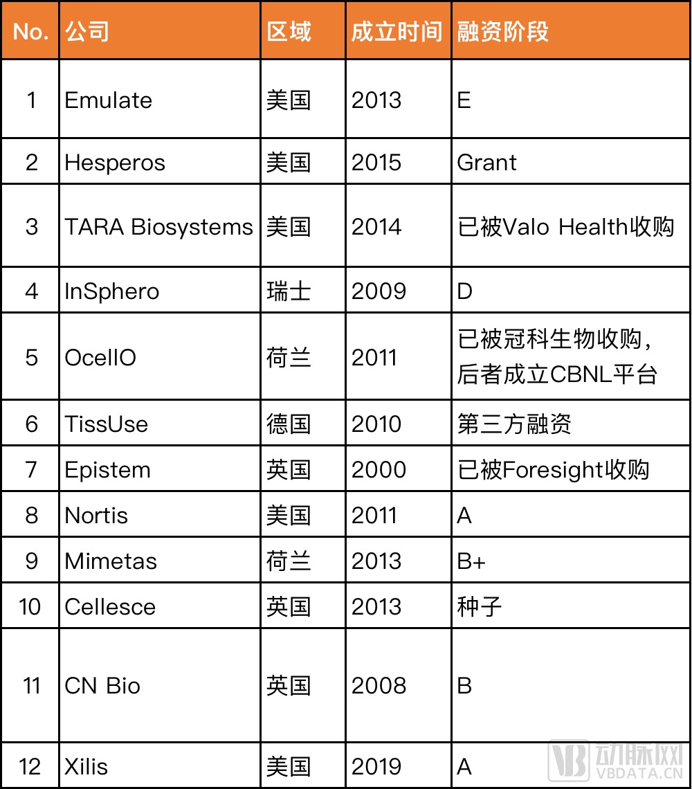 据研究,2019年北美类器官市场达到2.9亿美元,预计将在2027年达到14亿美元,将以21.7%的复合年增长率增长,不可谓是市场空间广阔。但十余年来,海外类器官领域暂无上市公司,走得最远的是已融到E轮的器官芯片公司Emulate,其他较为知名的类器官公司,大部分公开融资都止步于A轮或B轮,也有一些公司如TARA Biosystems、OcellO等已被收购。