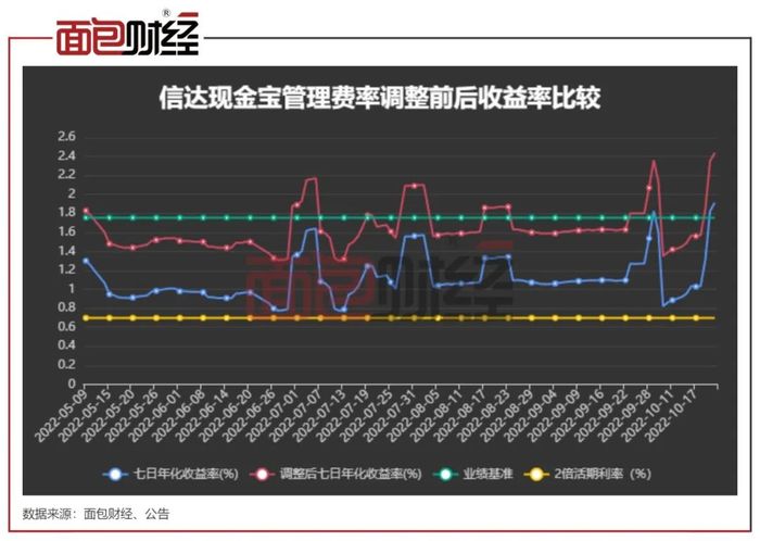 翻阅资料发现,信达现金宝在转型前曾收取0.7%的管理费,年化收益率超过0.7%的部分再提取30%作为业绩报酬。