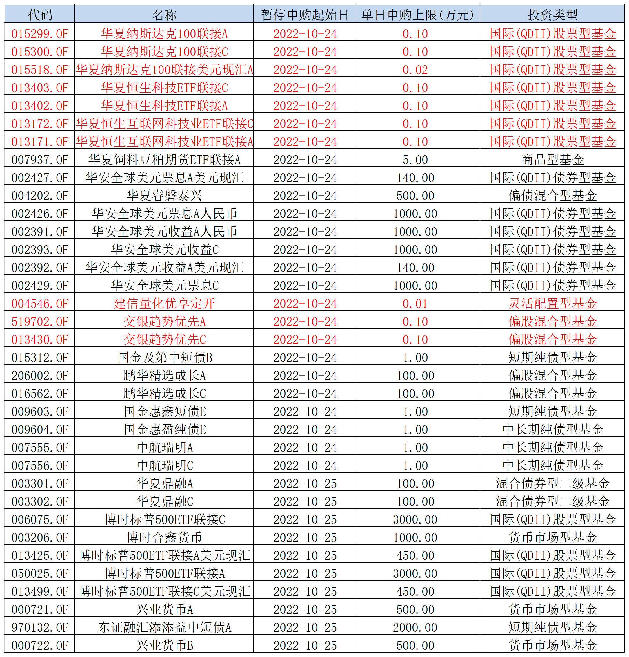 Wind数据显示,仅10月24日以来,就有35只基金发布限购公告。