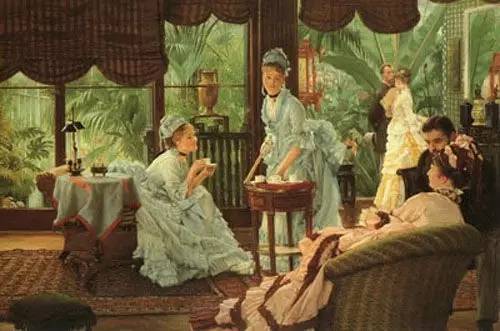 下午茶的时间到了,各位伯爵夫人们就开始互相邀请,一场精致的下午茶会就在欢笑声中热闹起来,逐渐演变成一种崭新的社交方式。喝下午茶的场所,也从女士的起居室发展到公共场所,好让那些过路的人,看到窗子里香甜可口的水果和面包,以及自己优雅的抿茶姿势。