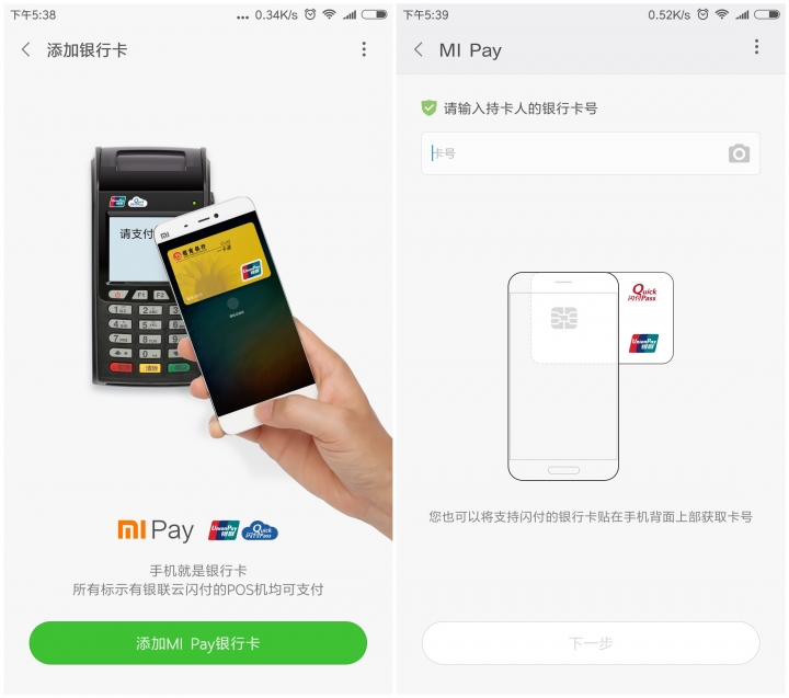 从小米官方透露的信息来看,此次小米推出的MI Pay实现的功能跟Apple Pay基本一致,同样是在绑定银行卡后通过NFC功能刷卡支付,目前只能支持搭载NFC功能的小米手机5。