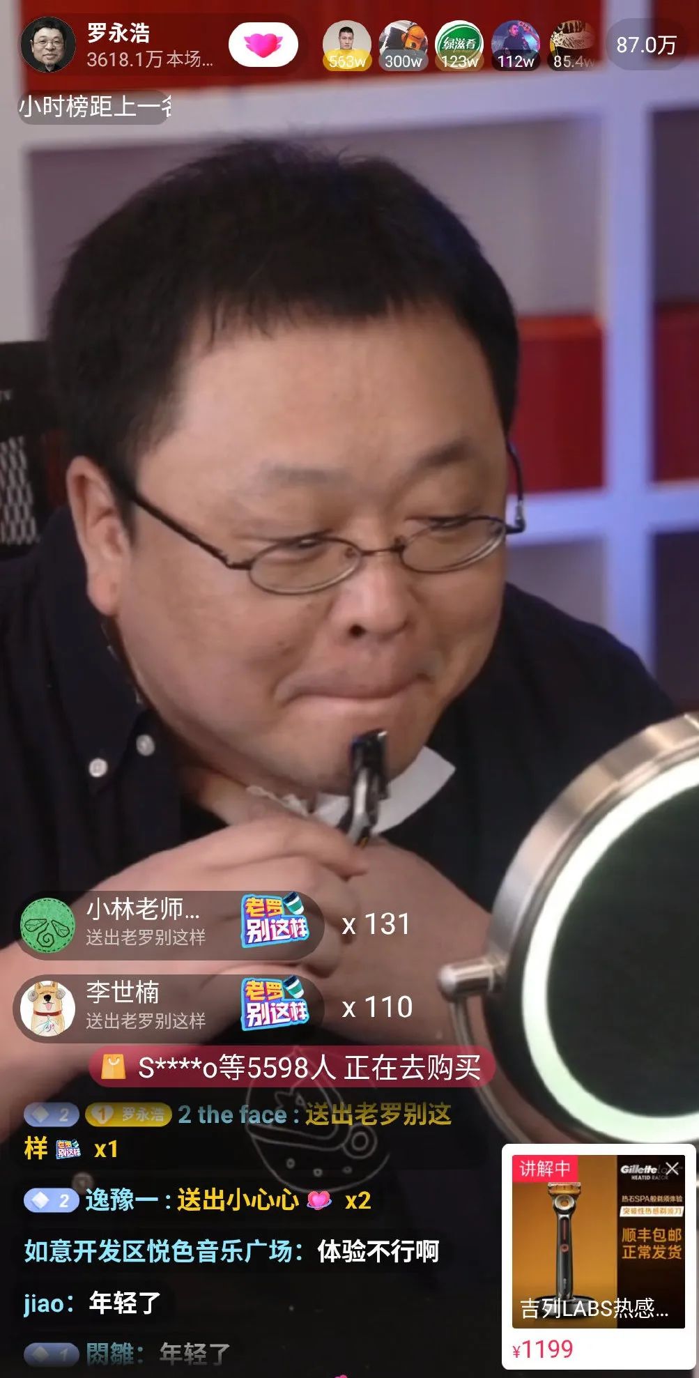▲ 罗永浩曾在抖音直播间刮胡子。图 / 网络