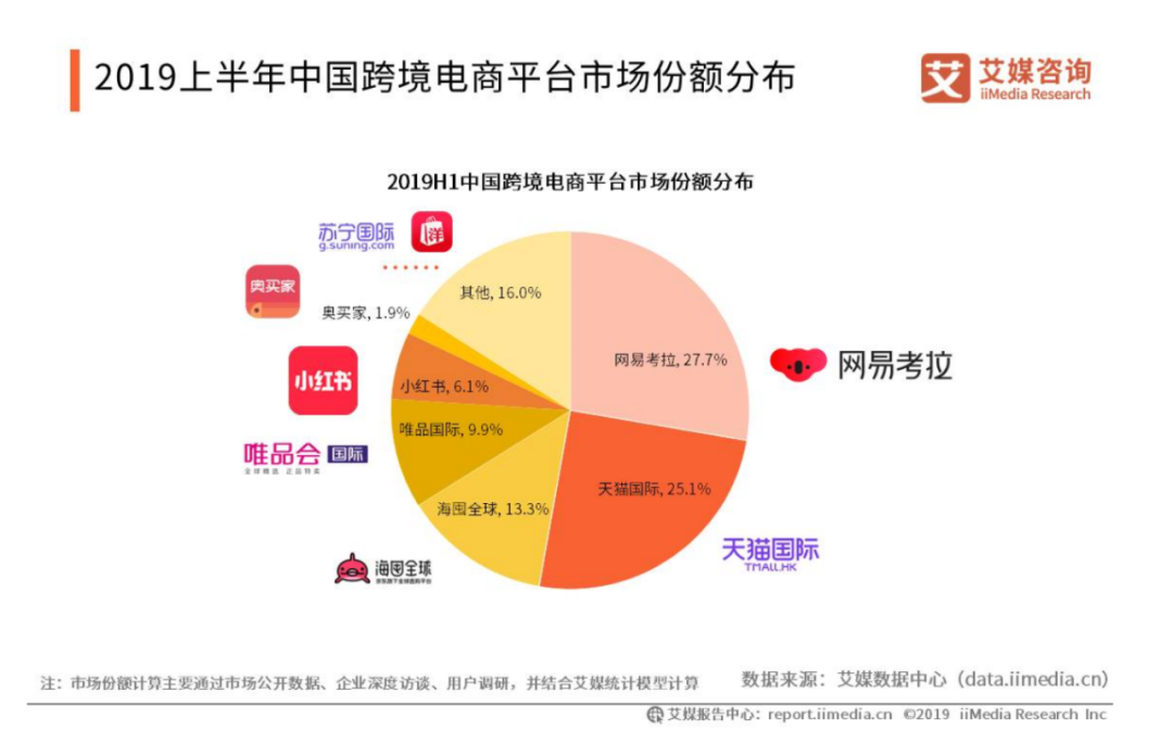 2019年上半年中国跨境电商平台市场份额分布,图/艾媒咨询