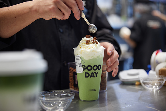 为了做好这杯抹茶,古茗可是下了大功夫。据了解,本次使用的抹茶都来自是薮北优质良种茶树,茶树本身有着更高的叶绿素、蛋白质、氨基酸含量,纯正真抹茶翠绿鲜亮、风味协调;会对本就已经优选的抹茶原料,多进行一次烘烤,进一步激发抹茶香;抹茶研磨度高,本身就足够细腻的抹茶在冲泡过程中还要再多一次过筛,确保细腻无粉。