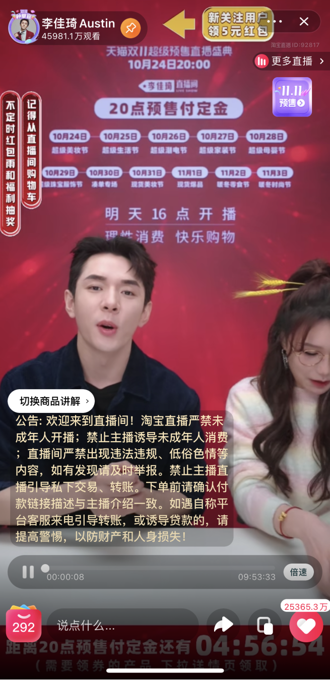 双11第一天,李佳琦归来仍是“带货一哥”