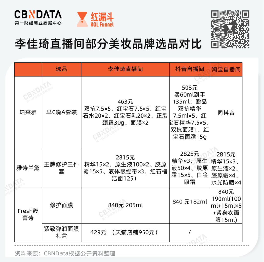 这款“早C晚A”的套装,在李佳琦直播间的价格低于抖音自播间40元,且赠品规格更丰富。珀莱雅对李佳琦的加注也得到了回报,根据李佳琦当晚透露的信息,珀莱雅上架的8款产品,均当场售罄。