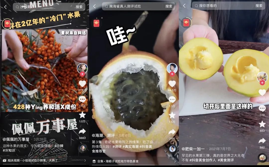 2021年夏天,号称“3秒微涩,5秒回甘”的油柑在社交平台频频出现,奈雪的茶、喜茶等新茶饮品牌相继推出油柑饮料,油柑的价格也一路疯涨,从一元多一斤,涨到十几元甚至几十元。油柑的出圈一方面是新茶饮的助推,另一方面是小众水果无论是从外形,还是独特的口感,都让“吃水果”这件事变得有新鲜感。在小红书平台,关于小众水果的笔记有7w+,丑水果的笔记有2w+,如今的年轻人不仅对各种“丑东西”上瘾,还钟情于尝试各种“丑水果”。在短视频平台,测评各种没听说过名字的水果视频点赞量动辄达到几十万甚至上百万,俨然已经成为一种新的流量密码。