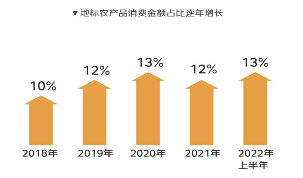 除了小众水果,地标水果也成为蔬果消费的特征之一。消费者在选购水果时经常认准地区性的特产,比如脐橙要买赣州的,石榴要买云南的,香梨认准新疆库尔勒……在消费者心中,地标农产品和绿色、安全、原产地等品质概念划上等号。京东数据显示,近5年,地标农产品成交额年均增长36%,高于农产品整体增速4个百分点;地标生鲜农产品成交额年均增长41%,高于生鲜农产品整体增速7个百分点。在农产品行业,地标就像是产品的IP,一款响亮的地标产品不仅能带动相关产品发展,还会成为城市的特色名片,使其在竞争激烈的市场打造自己的差异化竞争优势。
