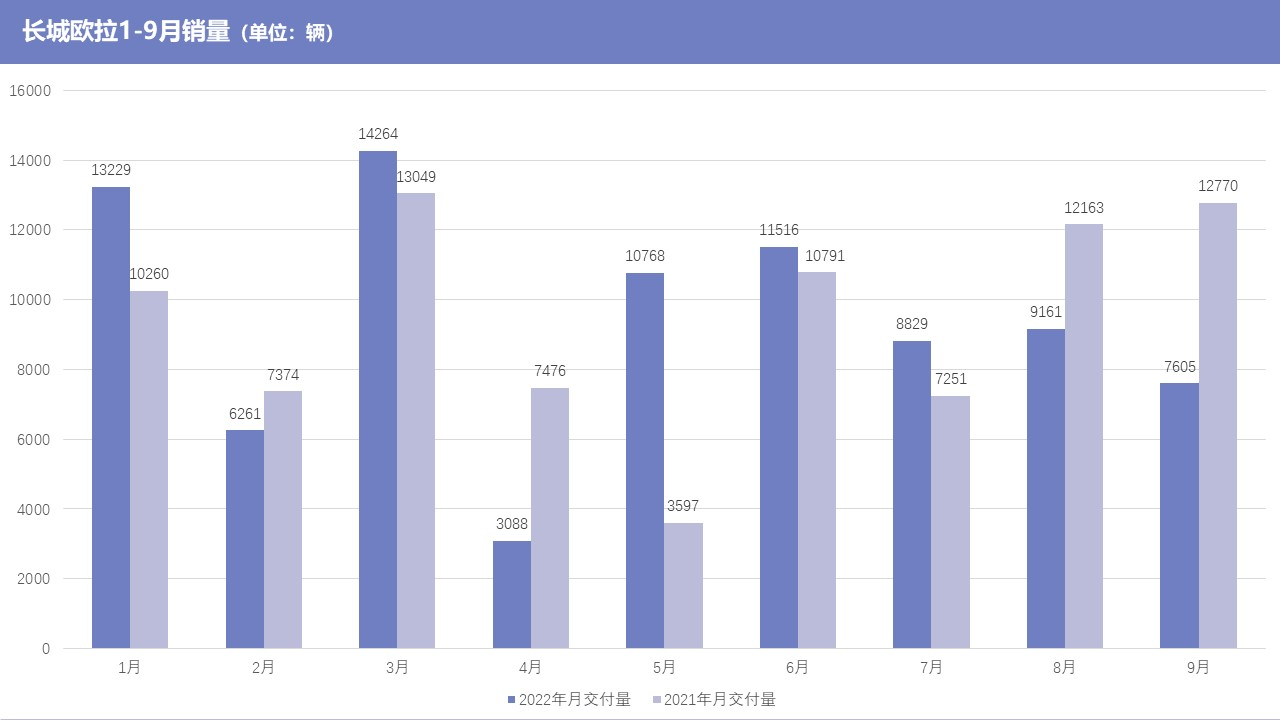 今年前9个月欧拉品牌总销量8.4万辆,基本与去年持平,市场竞争如逆水行舟,没有进步即意味着退步。