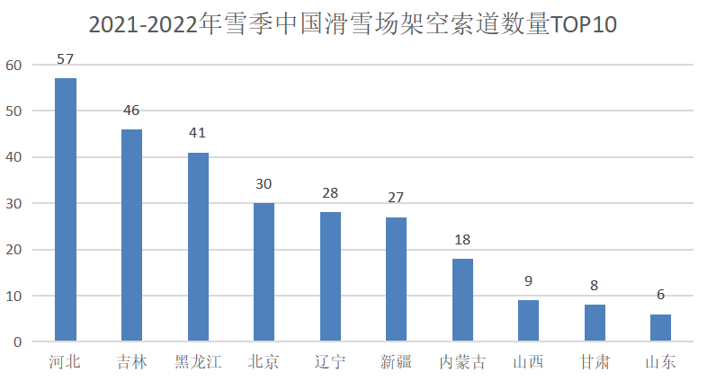但是,吉林滑雪场的品质普遍更高。架空索道数量是衡量滑雪场硬件设施先进程度的标准之一,截止上个雪季,吉林共拥有46条架空索道,位居全国第二,仅次于河北。