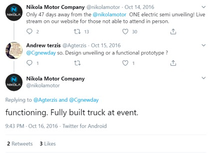 发布会结束后,Nikola的开发工作就被终止了,因为它已经完成了它的使命:吸引更多合作伙伴、筹措更多资金。2017年1月,Nikola完成了首轮融资的部分资金筹措。
