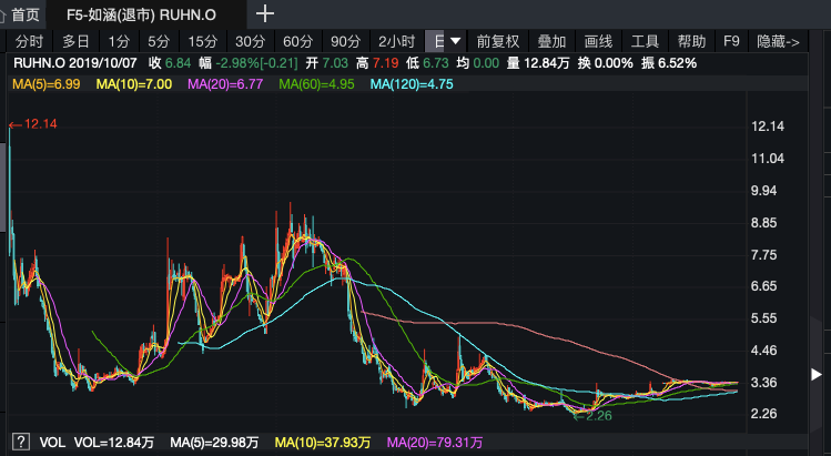 随着如涵控股退市,公司股价定格在3.4美元/股,较发行价缩水72.8%,总市值为2.81亿美元。这意味着在不考虑分红等情况,参与如涵控股IPO认购的投资人持股浮亏超七成。