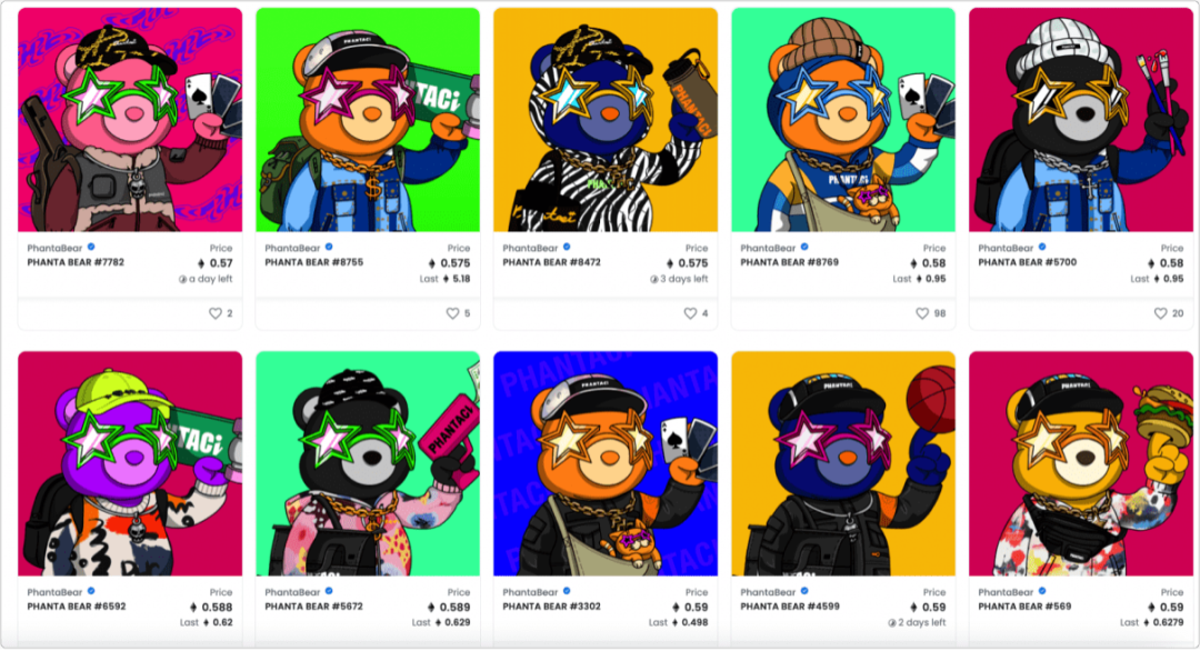 2022年1月,周杰伦名下潮牌PHANTACi和元宇宙平台Ezek联合推出的NFT作品“Phanta Bear(幻想熊)”,上线5分钟售出3000个,仅仅40分钟就宣布售罄,收入约6200万元;半个月内,“幻想熊”NFT交易量就已经超过5亿。