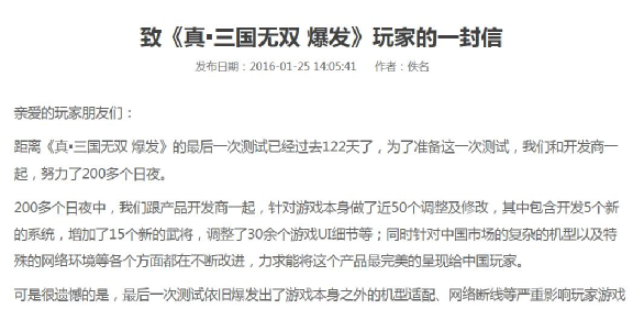 天戏的不靠谱,或许光荣早有察觉,它没有把鸡蛋放在一个篮子里。早在2016年光荣就绕过天戏,联系到完美世界在国内筹备过一款无双IP改编游戏《真三国无双激斗版》,主打的就是对初版《三国无双》的高清还原。或许是由于测试数据并不令人满意,游戏在国内搞过两次封测后最终没有上线。