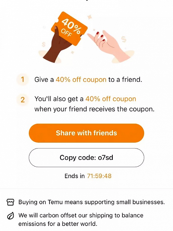 虽然,Temu并没有上线“砍一刀”功能。不过,只要将链接分享给朋友,双方都能享受40%的折扣。这有一点类似于国内好友拼单的模式。因此,在小红书等社交平台上,出现了一波自来水分享。一些人甚至找到了最佳省钱攻略,一位IP地址在美国的用户在社交平台上分享,折扣上限是10美元,而40%的折扣拼到25美元刚好可以优惠10美元,买25美元是最划算的。