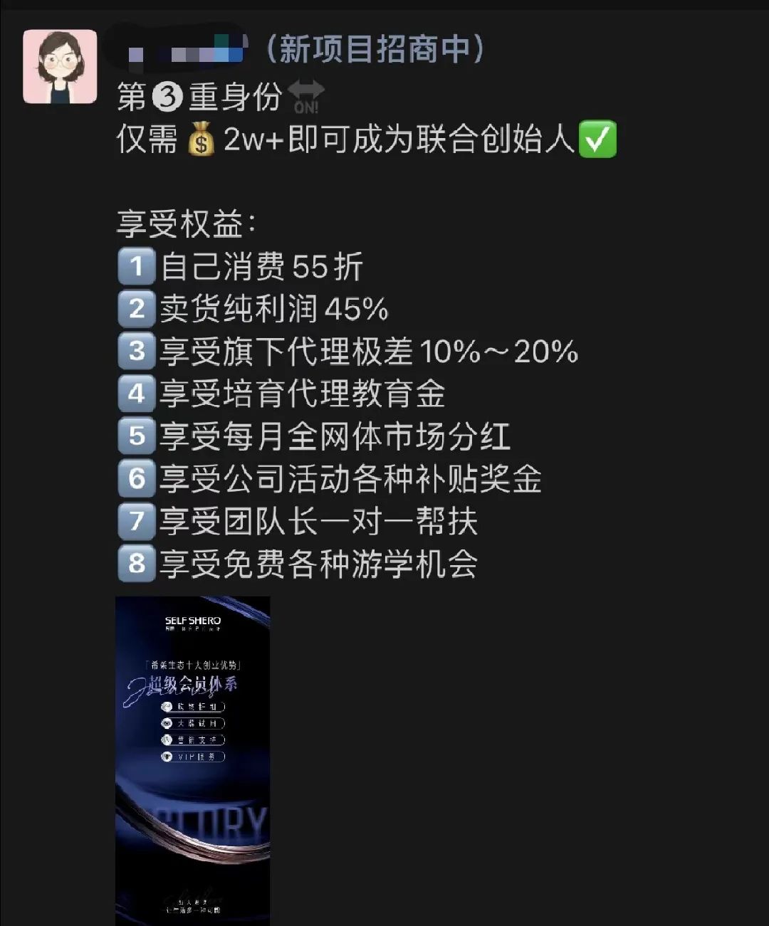 正是出于想减肥的目的,赵悦在希柔上购买3500元产品后成为“白金会员”,等级在联合创始人之下。“自己买T97咖啡都是原价,但是白金会员可以享受6.5折”。不仅如此,赵悦将T97咖啡等希柔上售卖的产品介绍给朋友后,还可以从朋友每一次购买中获得积分返点。积分达到一定数额,就可以升级会员资格。