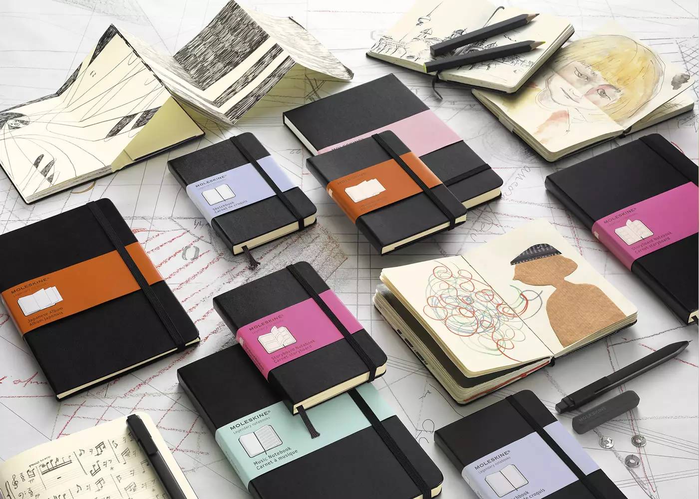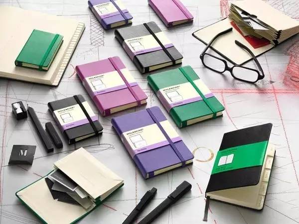 Moleskine是一种磨砂手感封皮的记事本,纸张采用淡黄色的无酸纸,本子最后有个内袋,里面可以放名片、贴纸等,有独特的皮筋绑绳,因其精致的做工设计,以及许多名人使用过的故事,吸引了一批忠实粉丝,在市场上大受欢迎。
