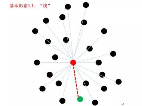 第二种形态是一种或少量的几种产品和入口结合起来,就如一根线,这往往是传统产业和互联网结合的一个主要模式,即传统产品与互联网入口相结合,这种模式我把它定义为“线”模式。如下图: