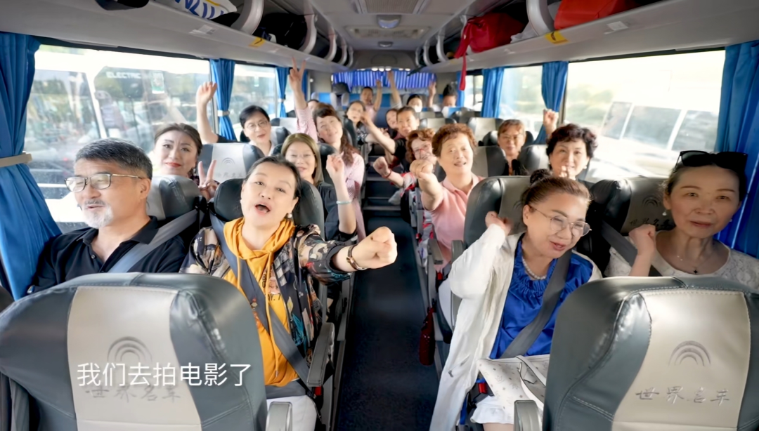 16个大妈,其中一个还带了自己的老伴,在初秋兴致冲冲的登上了前往浙江横店的大巴。花絮中,大妈们对即将到来的拍摄感到分外兴奋,集体高喊“我们要去拍电影啦”。