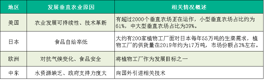 图:部分地区和国家发展垂直农业概况一览,数据来源:PlugandPlay
