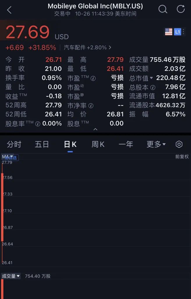 截至北京时间23点43分,其股价为27.69美元/股,涨幅31.85%,总市值逾220亿美元,超过了英特尔在2017年收购这家公司时花费的153亿美元。