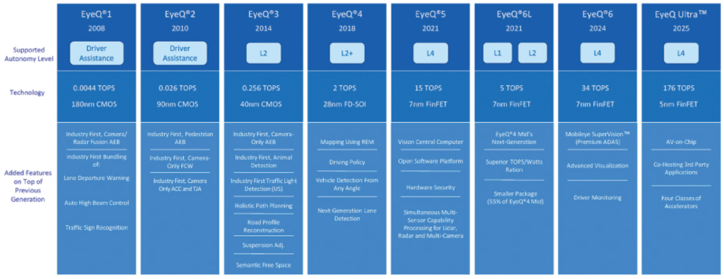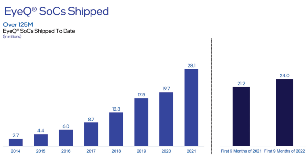 Mobileye的EyeQ系列芯片出货量一路上扬