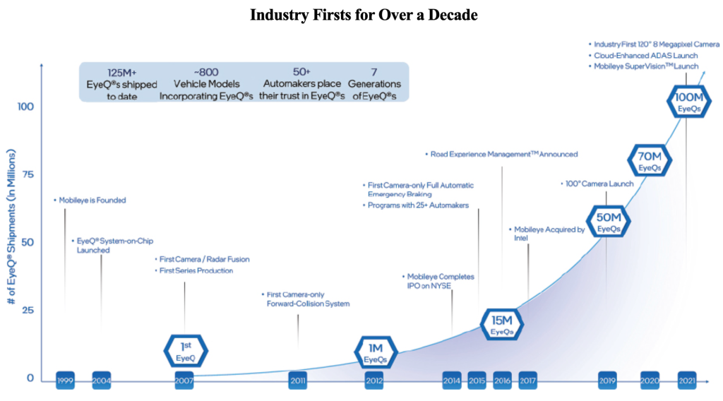 它在招股书中披露,截至今年10月1日,其解决方案已经安装在800款车型,EyeQ SoC已经部署在超过1.25亿辆汽车中。目前全球最大的15家汽车制造商中,有13家都是Mobileye的客户。