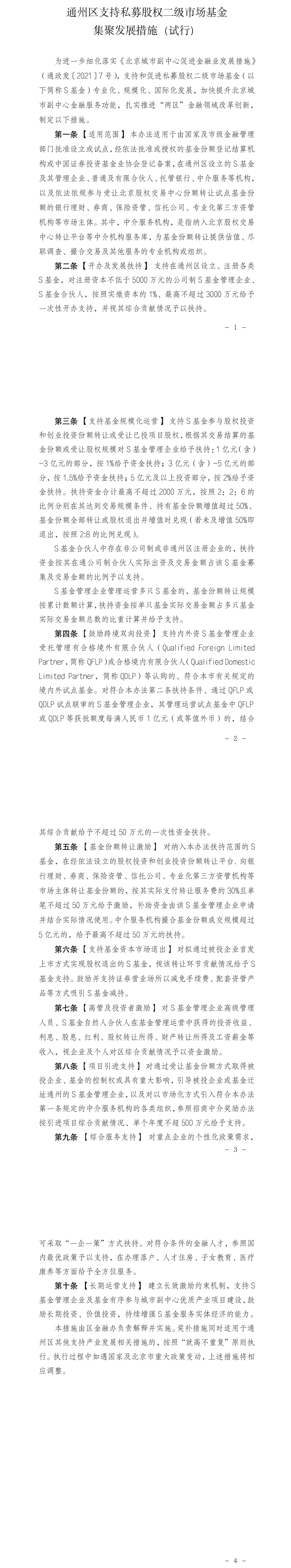 附:《通州区支持私募股权二级市场基金集聚发展措施(试行)》