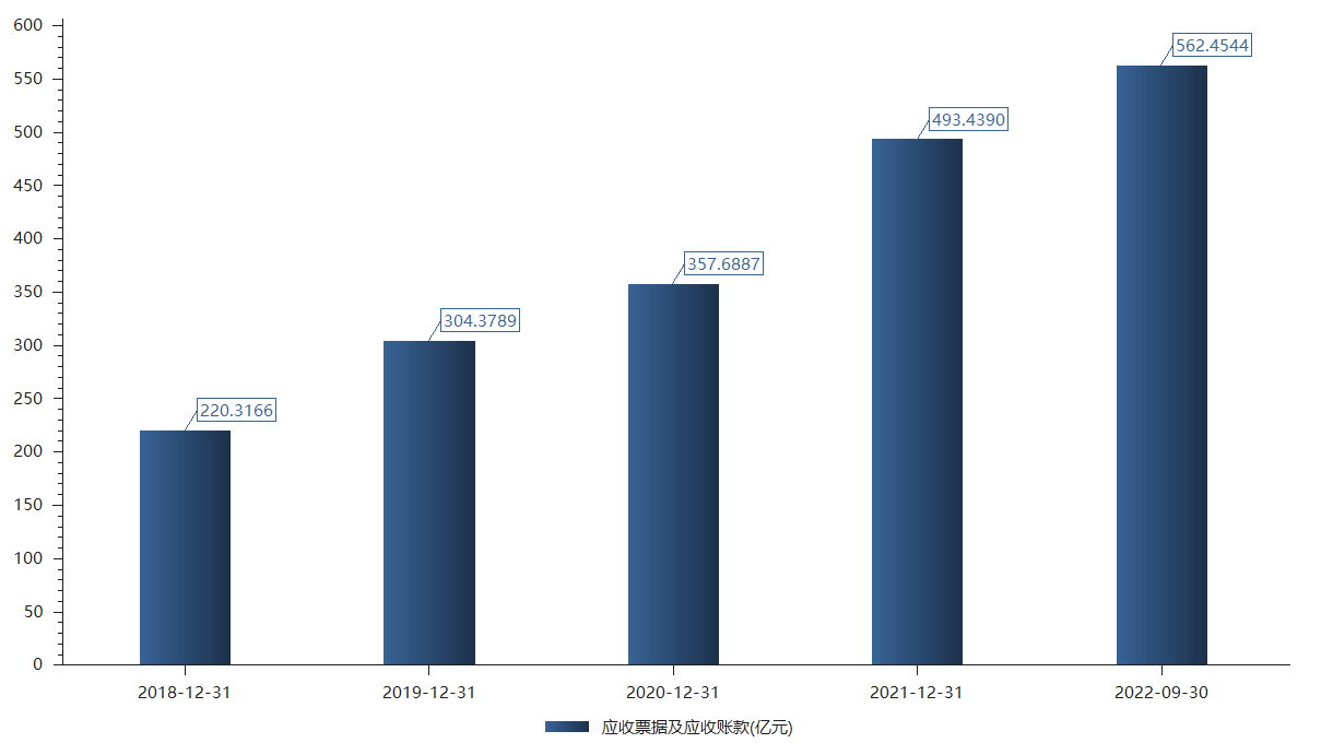 上下游赊销成为行业的一种循环。徐工机械给上游“打白条”,下游客户亦大幅占用徐工机械的货款。截至2022年三季末公司应收票据及应收账款达562.45亿元,占总资产的比重达32%。