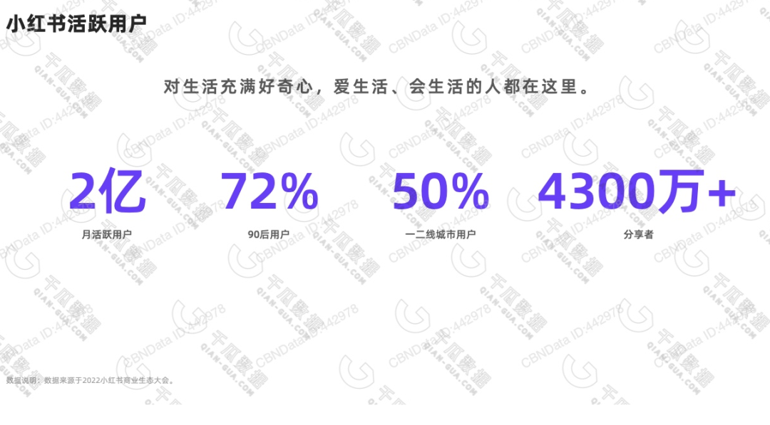 小红书能成为众多品牌的宣传阵地,主要是因为其拥有海量优质的流量。2022年3月,千瓜数据发布的《2022 年千瓜活跃用户画像趋势报告(小红书平台)》显示,小红书有超2亿月活用户,其中72%为90后,50%分布在一二线城市,共有4300万+创作者。