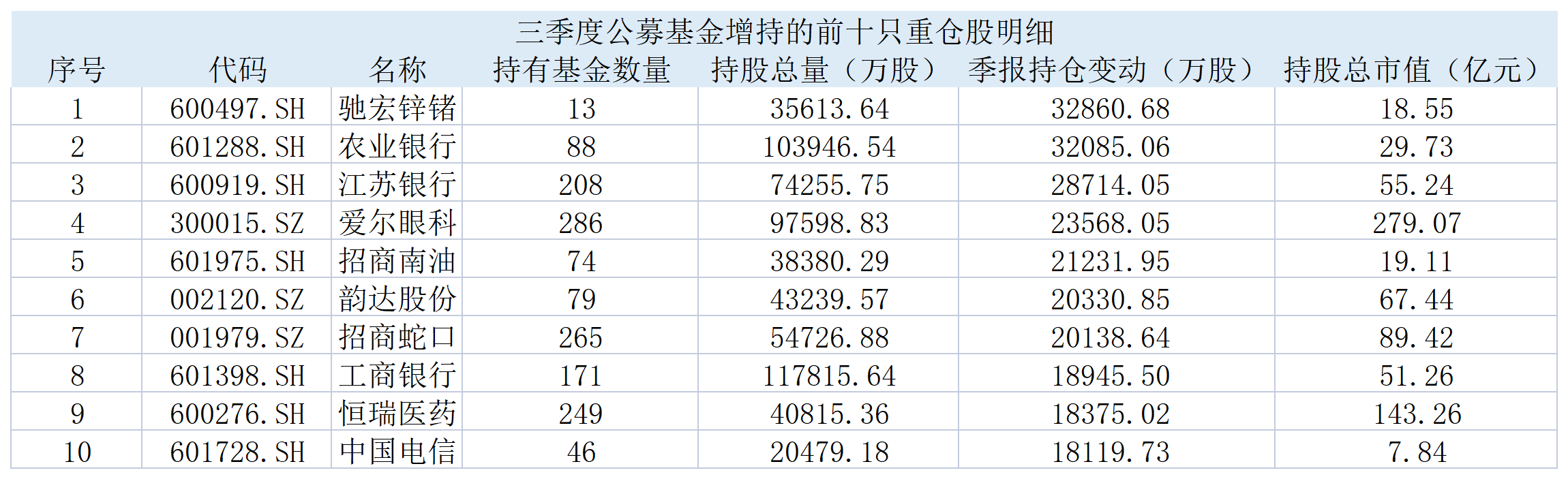 从持有数量的变化来看,持仓增加比较明显的前10只个股如下: