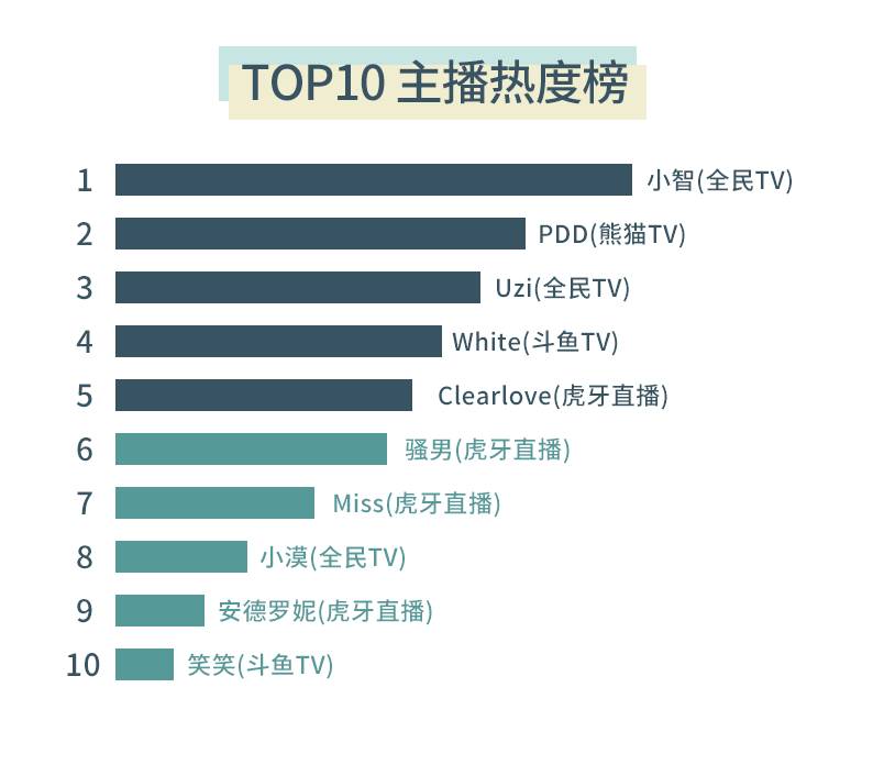 而比熊猫TV上线晚两个月的全民TV,无论是创始人还是背后的资本方都保持低调,看来也不打算在这上面给自己造话题、贴标签。但值得关注的是,在拿下行业最顶级主播上,全民TV却很高调:在成立的第一时间就先后签下小智、小漠两位顶级主播,后又签下Uzi,在此之后OMG、灵药、诺夏、7号、秋日、伊芙蕾雅等主播陆续入驻。在主播争夺战中,全民TV的策略可谓高明,第一时间抢到大主播可以为成立之初的平台迅速带来流量和知名度,全民TV就这样迅速在行业积累了影响力,成为行业最年轻但发展速度最快的一家。