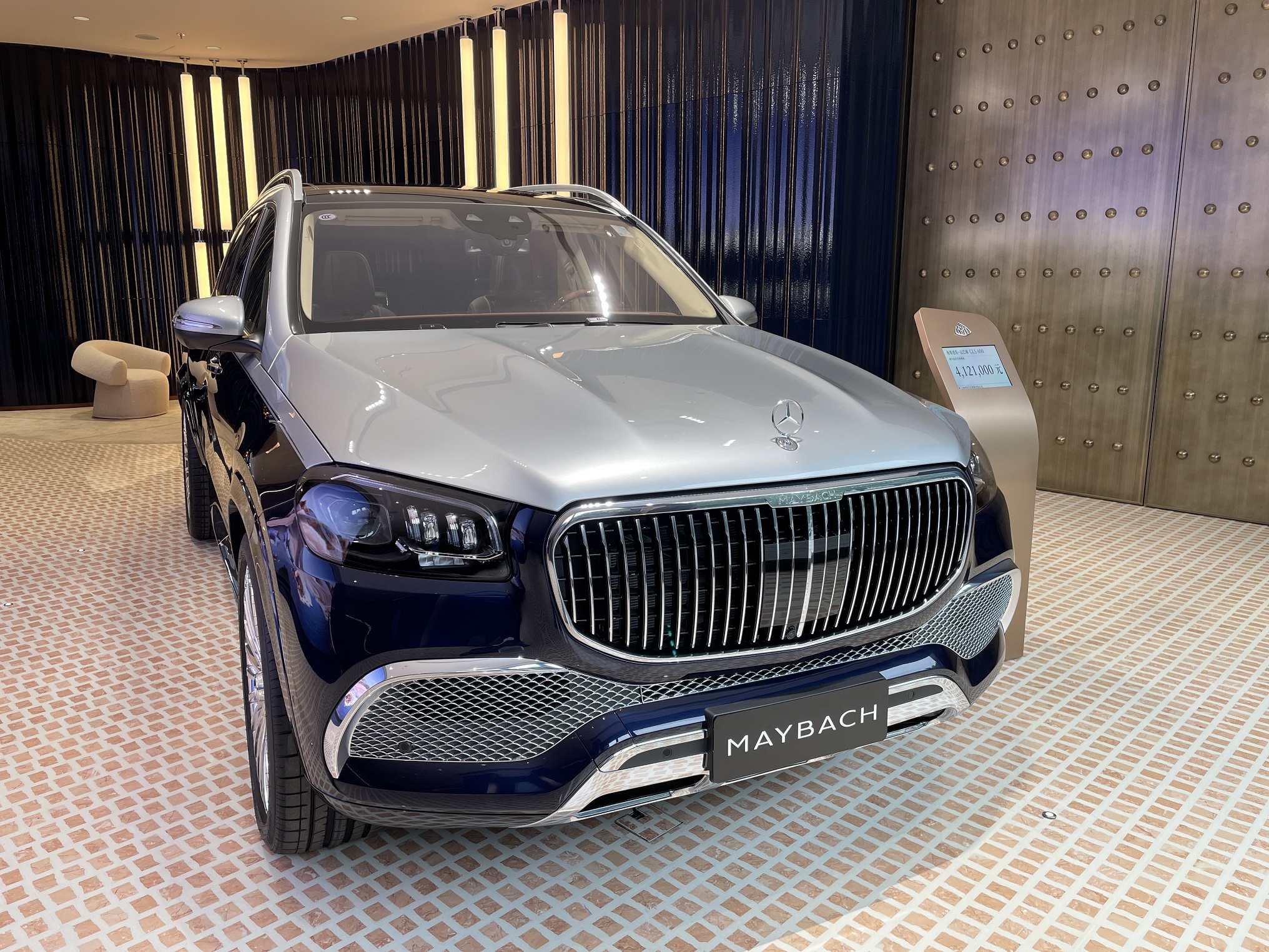 据官方介绍,迈巴赫特意邀请国色大师仇庆年以中国色为灵感,为迈巴赫S级轿车四款专属车漆命名为霁青、栾华、月白和玄黑。这家门店展出的迈巴赫S580和迈巴赫S680分别是定制的玄黑色和霁青色。迈巴赫GLS 600也是独特的黑白双拼色,裸车价为412.1万元。