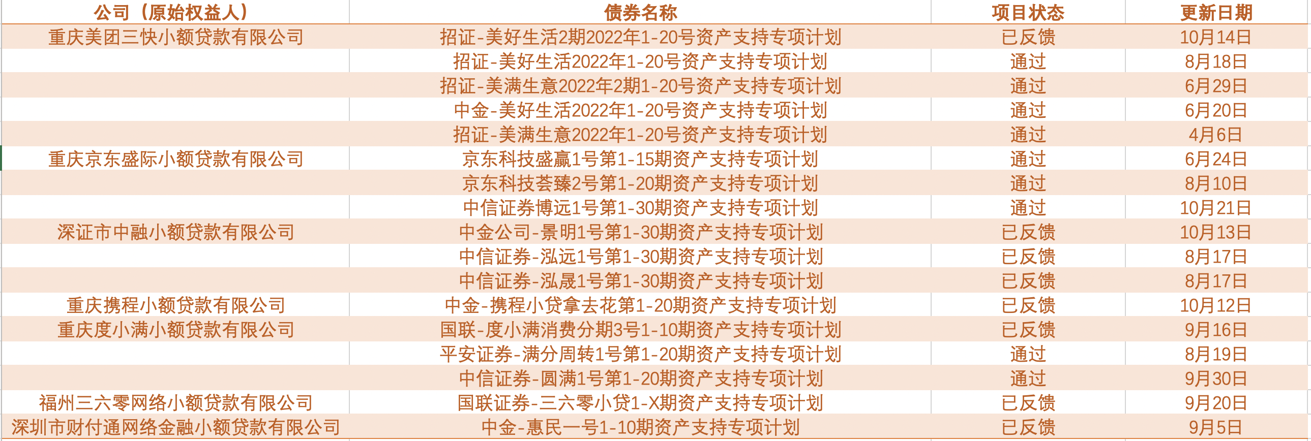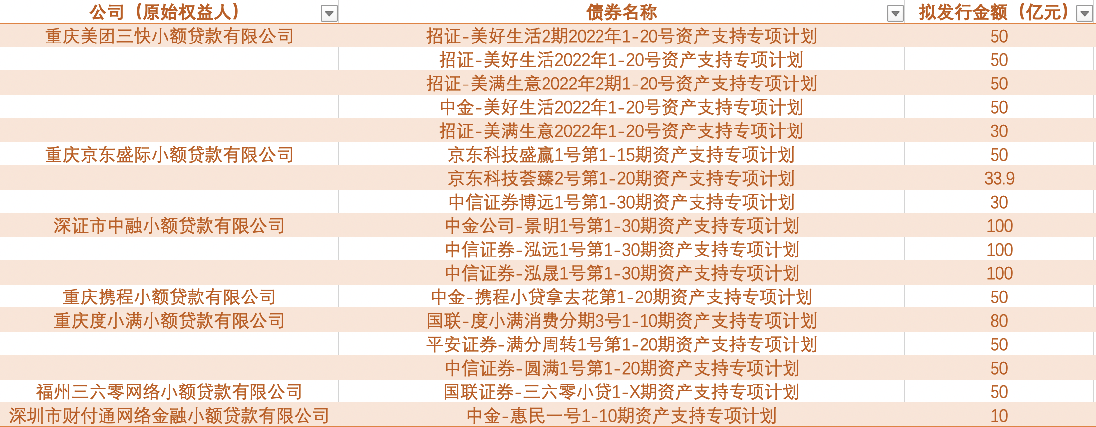 美团小贷已发行金额最多,字节旗下小贷300亿ABS仍在审批